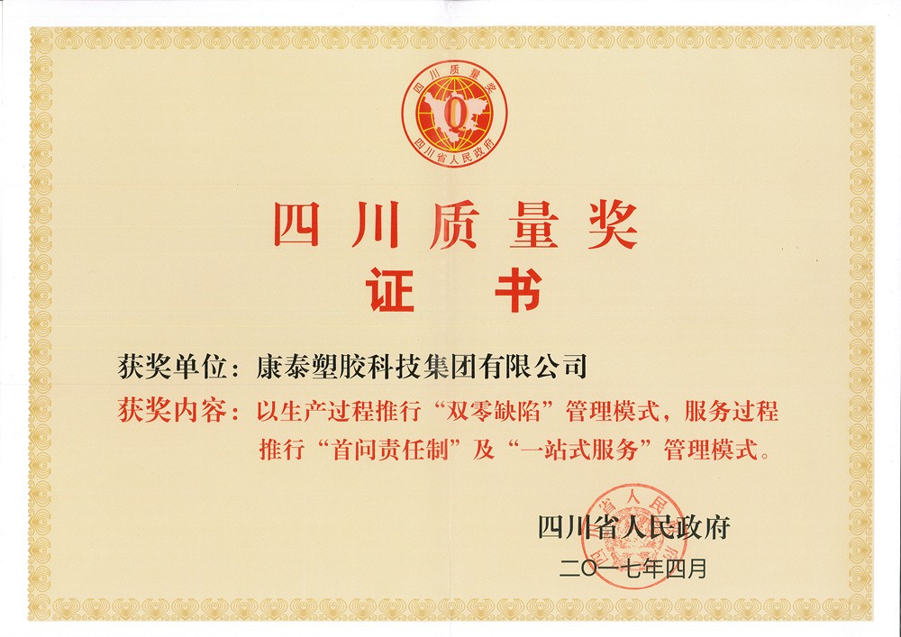 作為“四川質(zhì)量獎(jiǎng)”的獲得者,康泰塑膠科技集團(tuán)從創(chuàng)立以來(lái),一直致力于對(duì)產(chǎn)品的研發(fā)升級(jí)和質(zhì)量把控,不斷滿足客戶的需求。在康泰,公司建立了一整套質(zhì)量管控體系,以“圍繞全球顧客、不斷改善,追求產(chǎn)品零缺陷”的質(zhì)量方針,貫徹“產(chǎn)品如人品”的質(zhì)量理念,全面覆蓋ISO9001、ISO14001、OHSAS18001三體系,實(shí)施全員、全面質(zhì)量管理,通過(guò)導(dǎo)入PDCA循環(huán)管理和QCC體系,嚴(yán)格質(zhì)檢把控?!皥?jiān)持不合格原料不進(jìn)廠”,從源頭杜絕不合格產(chǎn)品的出現(xiàn);“堅(jiān)持不合格的產(chǎn)品不出廠”,從生產(chǎn)流程上杜絕不合格產(chǎn)品的出現(xiàn),確保產(chǎn)品各項(xiàng)質(zhì)量指標(biāo)均達(dá)到或優(yōu)于國(guó)家標(biāo)準(zhǔn),讓用戶滿意。