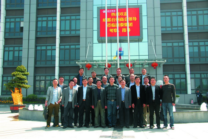 ??? 芬芳四月,風(fēng)和日麗。2013年4月13日,成都臺州商會企業(yè)家考察團一行四十余人,在陳順法會長的帶領(lǐng)下,來到崇州市,參觀考察了商會名譽會長單位康泰塑膠科技集團,名譽會長林云青和常務(wù)副會長陳霞富熱情接待。