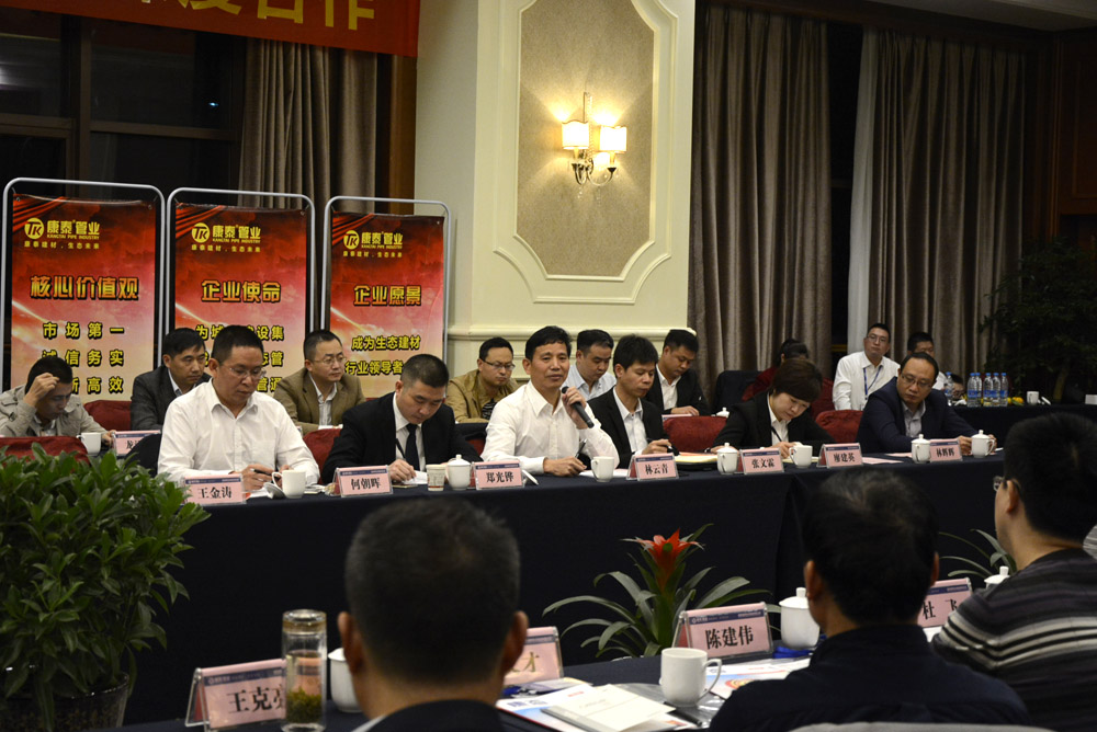副總裁鄭光鏵在會(huì)上作了題為《轉(zhuǎn)型升級(jí) 深度合作》報(bào)告。從經(jīng)銷(xiāo)商面臨的挑戰(zhàn)、國(guó)家政策導(dǎo)向、行業(yè)前景、康泰發(fā)展目標(biāo)、戰(zhàn)略與目標(biāo)匹配、經(jīng)銷(xiāo)商的定位、經(jīng)銷(xiāo)商深度合作模式七個(gè)方面作了闡述指出,塑膠建材行業(yè)仍然是個(gè)好行業(yè),是個(gè)挑戰(zhàn)與機(jī)遇并存的行業(yè),康泰也在積極做整體管理、統(tǒng)一營(yíng)銷(xiāo),加快產(chǎn)業(yè)+資本轉(zhuǎn)型升級(jí)。廣大經(jīng)銷(xiāo)商要以康泰為平臺(tái)支撐,積極整合資源,共同應(yīng)對(duì)行業(yè)大洗牌的挑戰(zhàn),實(shí)現(xiàn)合作共贏。