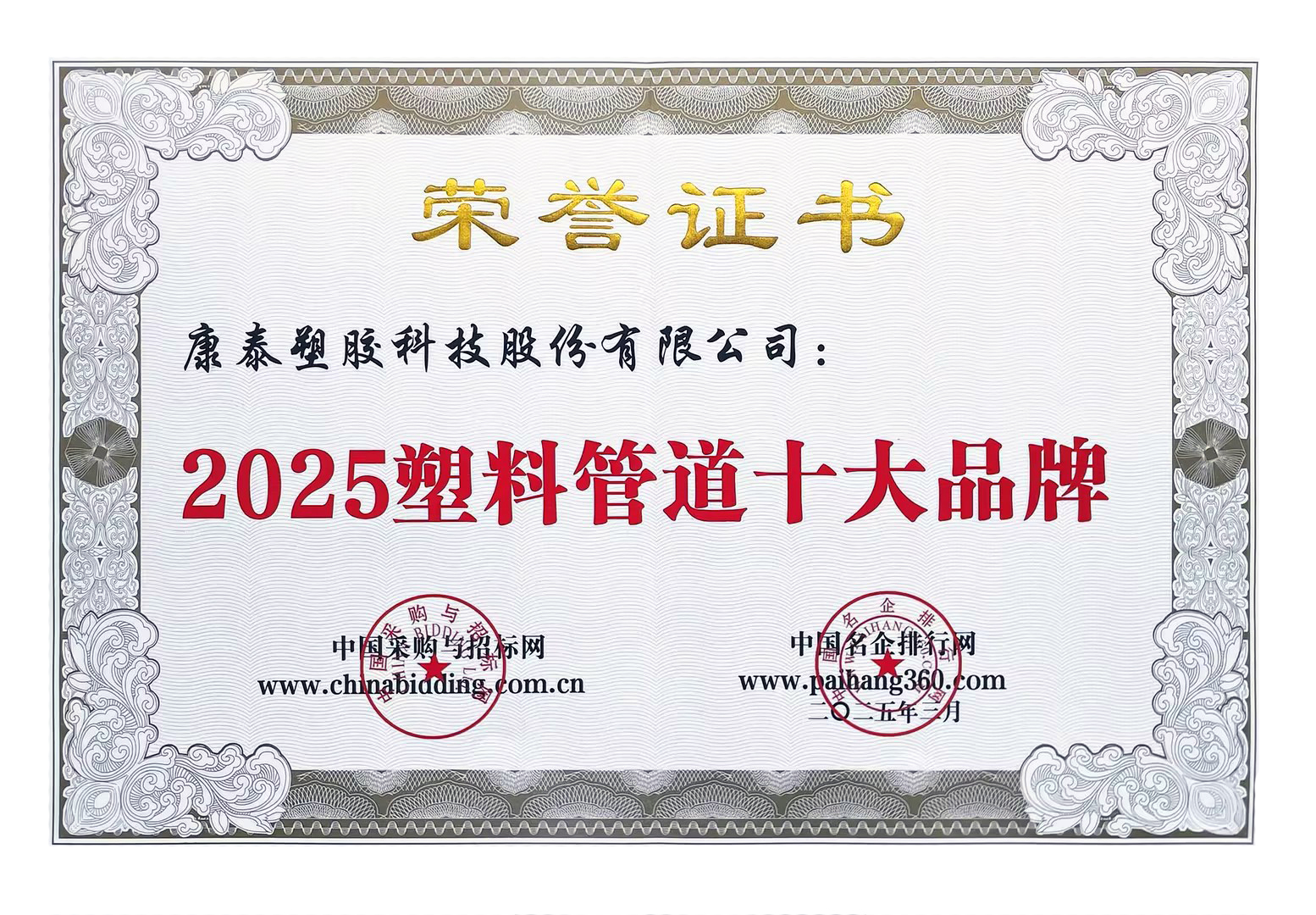 康泰集團榮獲“2025塑料管道十大品牌”、“2025家裝管道十大品牌”等稱號2025/03/24 432日前,在中國采購與招標網(wǎng)、中國名企排行網(wǎng)聯(lián)合主辦的中國塑料管道評價活動...read more -